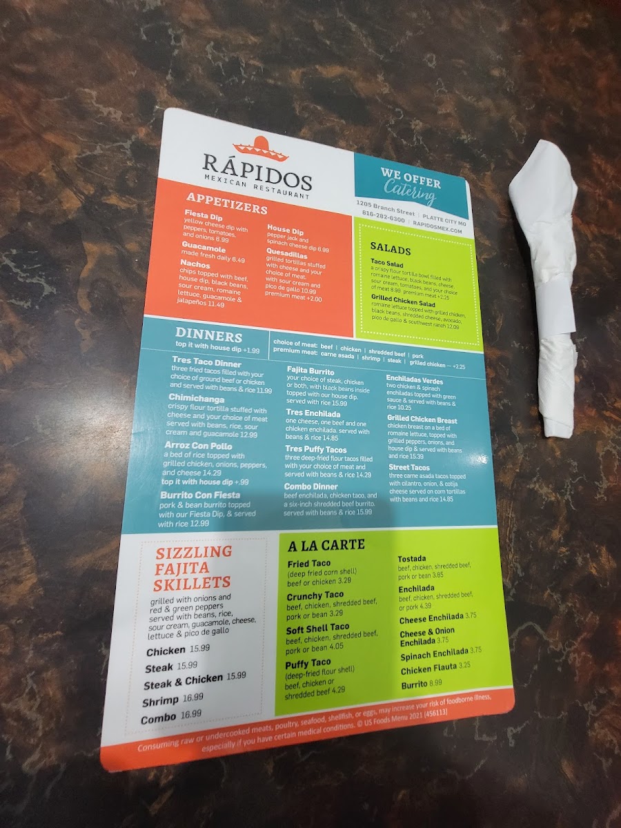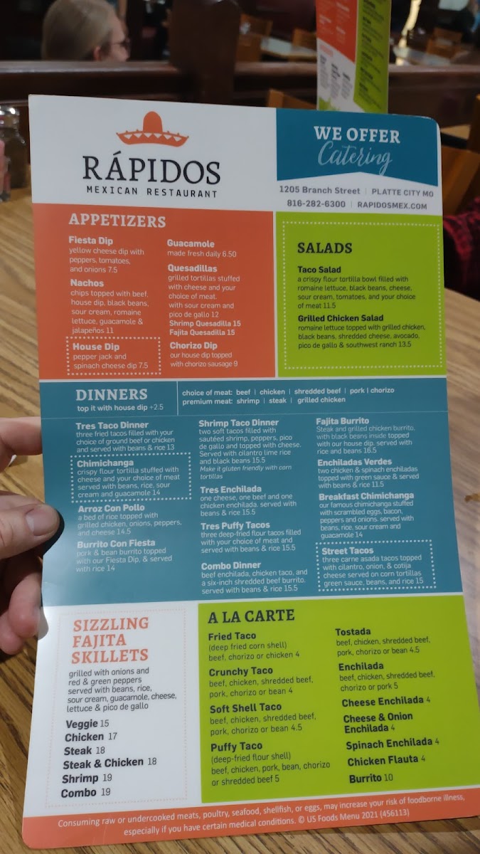 Welcome to Rapidos Mexican Restaurant, nestled in the heart of Platte City, MO. This charming eatery promises homestyle Mexican cuisine with a warm and welcoming atmosphere. Customers rave about the fried tacos, available on tantalizing specials such as 2-for-1 on Tuesdays and Thursdays. The puffy tacos showcase a delicious fried flour tortilla, while the chicken enchiladas offer a satisfying burst of flavor.